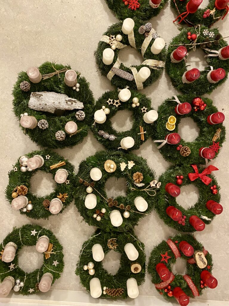 Etant donné que Noël s’approche, nous sommes heureux de vous annoncer que nous vendons de nouveau des couronnes d’Avent. Les couronnes sont vendues pour le prix de 40€ par pièce et sont disponibles dans les couleurs rouge, blanc et taupe.